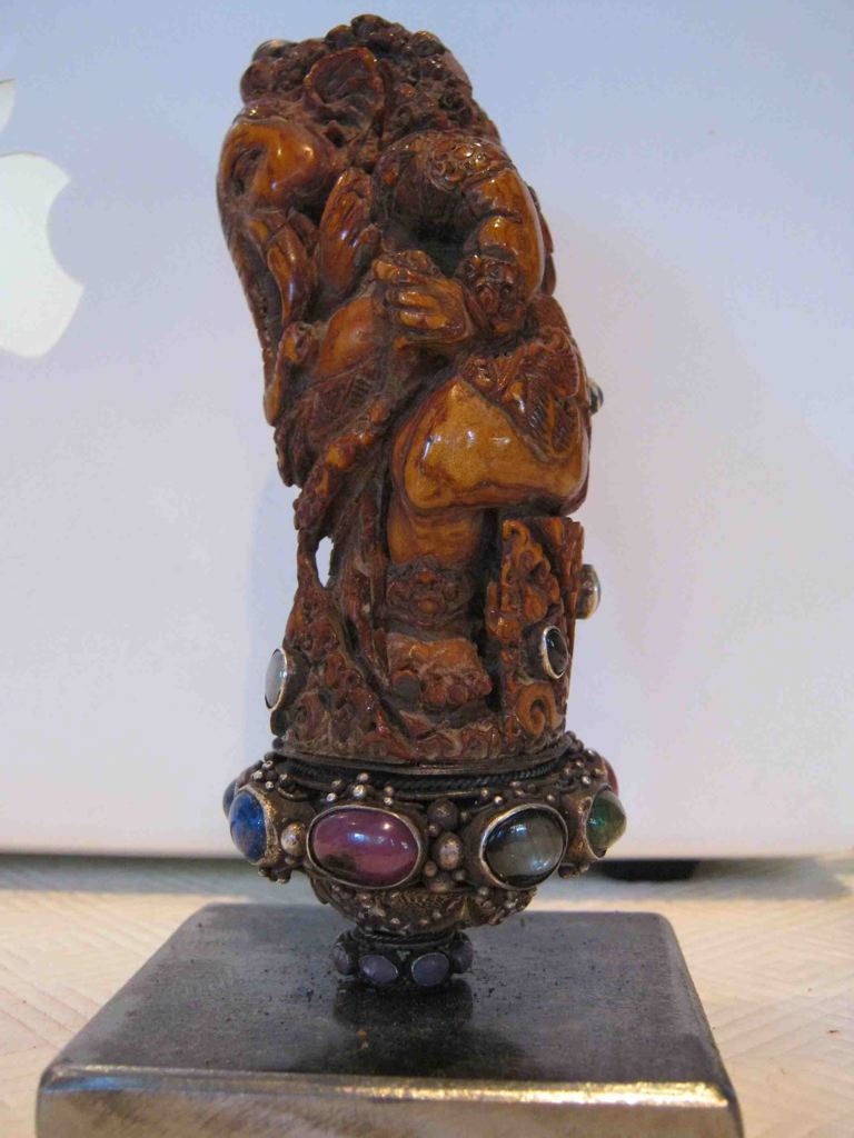 All right , that is my last buy . Some of you already look at these pics for opinion on material used for this ganesha Bali hilt . Lot of different suggestions but looks like we have sperm whale tooth .... or horn ?! Impossible to remove the selut to get a closed inside view unfortunately .