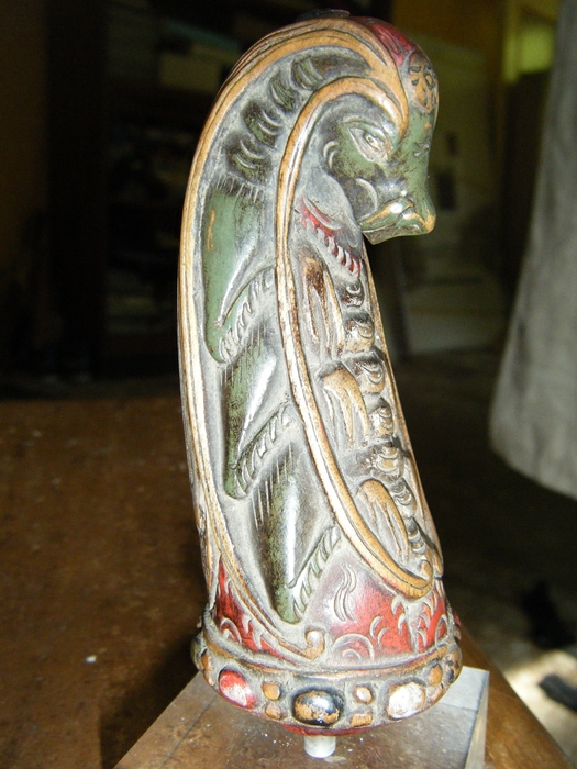 I've posted these before in our "Figural" thread, but for the sake of grouping here are a couple of my Bali hilts. Nothing extraordinary, but they hold some personality for me.