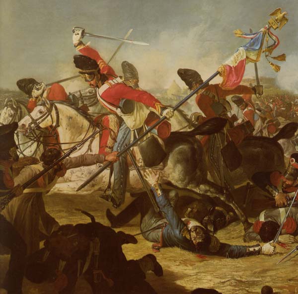 Sergeant Ewart capturing the Eagle. Whether by accident or design Ewart's sword appears to have a re-profiled point which was done to some 1796 H.C. Troopers swords in order to try and make it a more effective thrusting weapon whilst the the sword directly behind appears to still have the original 'hatchet' point as issued. Regards, Norman. P.S. 'Sirupate', I can vouch first hand for Richard Dellar's book, a great and informative read. Last edited by Norman McCormick; 5th January 2014 at 07:09 PM. |