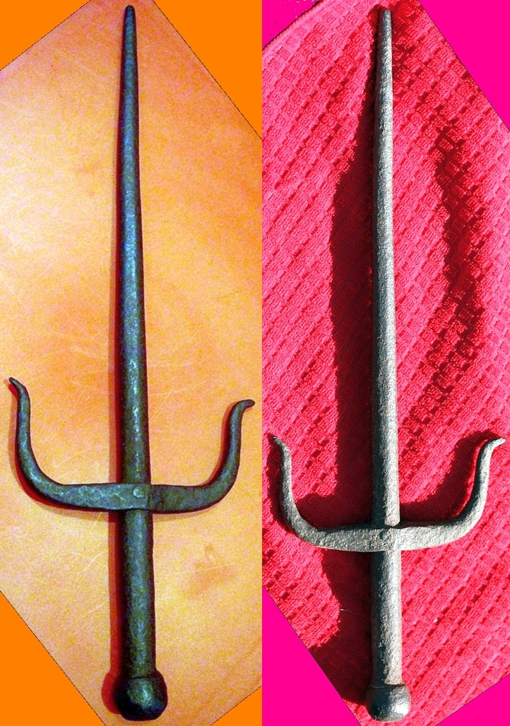 Here is something I think we can agree is probably an indicator of Chinese manufacture, this particular four sided cross section. I have never seen a sai from either Indonesia or Okinawa that had this cross section.