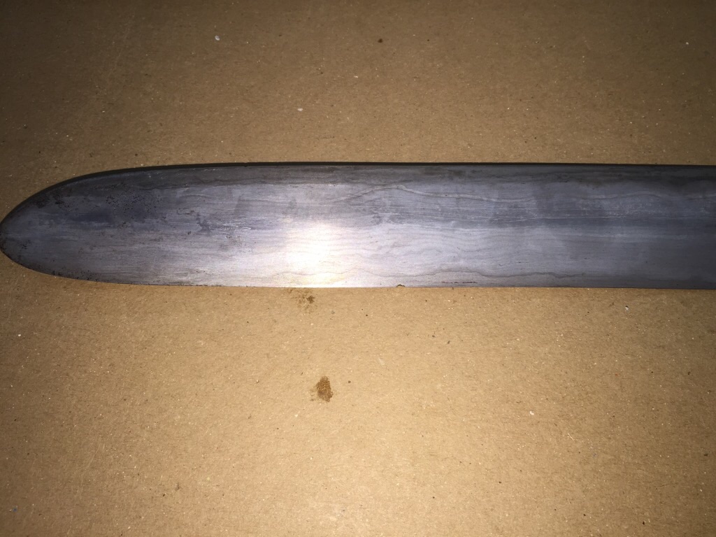 First, scraped off the active rust. Second, polished the blade and the hilt (turned out to be silver). Third, etched the blade in warm vinegar for around 10 mins, then neutralized with baking soda slurry. Fourth, wiped it all down. Ps: I didn't touch the gangya area because I wasn't too sure about what I was doing. Anyway, here goes. |