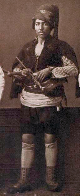 Photos of Greek-identifying insurgent bands in late Ottoman Macedonia. As much of interest for the accountrements (cartridge boxes etc) as the qamas and bichaqs.