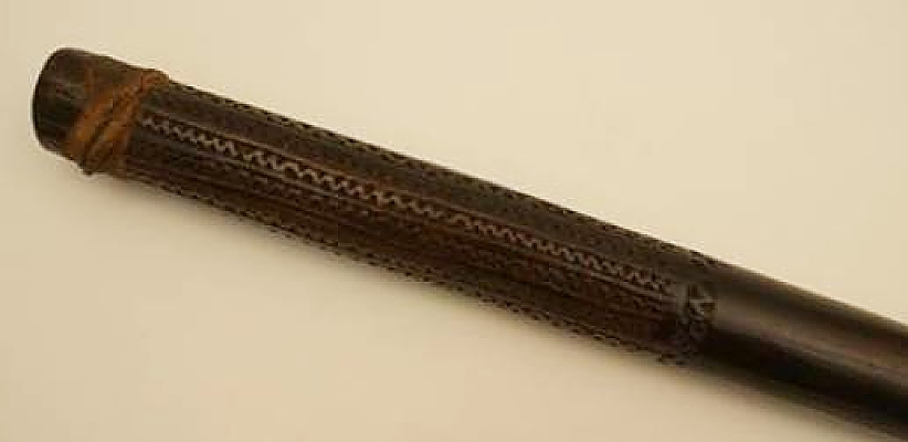 #9. FIJI BULIBULI WITH CARVED SHAFT SHOWING TONGAN INFLUENCE.
