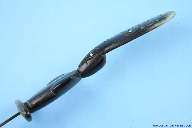 The scabbard looked Mexican to me, but that carved hilt really does look African. Is there some significance to the figure, and does it occur on other items from these regions? |