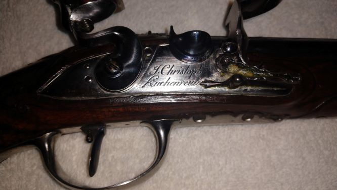 Bruno, I should hope he doesn't plan to. Another post on this thread commented that these guns look like they are unfired. The thing about flintlocks is that each and every time the cock (bearing a flint in its jaws) rakes against the frizzen as it snaps forward, tiny little incandescent particles of steel are scraped off the frizzen's surface. These hot specks of metal are the sparks that ignite the priming. Contact with the flint leaves gouge marks on the frizzen face, something you won't see on an unfired gun. Most collectors put a high premium on all aspects of a gun's state of preservation, so you can imagine what such signs of wear would do to its desirability and thus market value of an otherwise excellently-preserved example.