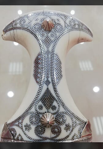 We know that the main traded items entering the Zanzibar hub were Slaves ..Rhino Horn and hides and Ivory. It has been quite difficult to obtain Ivory Khanjar examples with specific high definition pictures but luckily we have a couple for forum. High density plastic has been used and makes a reasonable substitute however here is the real thing and we can only hope more substitute materials can step up such as Mamoth ?…