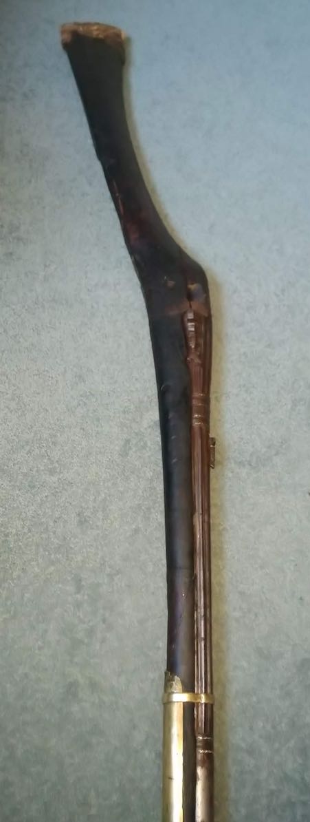 Thanks Battara & Khanjar1, I've added some pictures. The stock is broken but can be clammed & glued. The brass bindings are OK too.