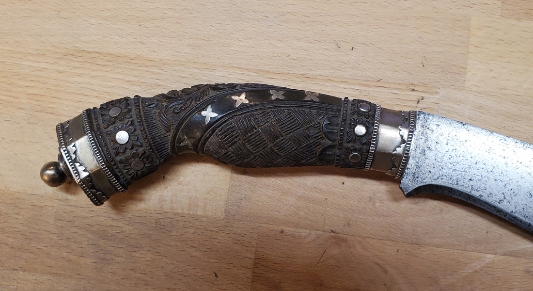 This is fro the island of Luzon in the Philippines, perhaps Ilokano tribe or even Tagalog(?). It is from the mid-late 19th century and for someone of higher status, as evidenced by the silver work and the carving.