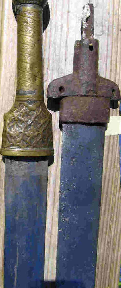 I was wondering, if there was any possibilty that Jambiya style hilts were actually used on these swords, they certainly do 'fit', and the original hilt on that one looks like iron to me. I wouldnt want to be holding an iron hilt, in a long hot day.