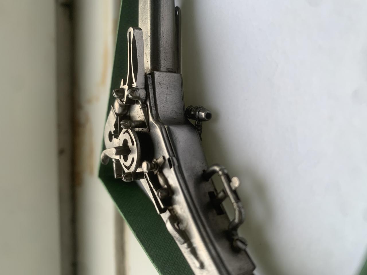 I recently acquired what is purported to be an original 1/3 scale wheellock pistol made by the German maker Hans Bauer ? ( UK 10p for scale) But I cannot see any evidence for a maker. As regarding age I am told late 16th century/ early 17th century however of course I am dubious at this claim but that doesn’t take away from the extremely high quality of the craftsman ship that went into the pistol and is of extremely high quality. Sadly at some point someone has taken a wire brush to the surface And removed the original patina, but it still does show some age when examined closely and has sight pitting across the surface. Also I know the wrench is a modern and quite recently made addition. I would like to see what some of the highly knowledgeable members of this forum think and see what conclusion they come to. Look forward to a discussion.
