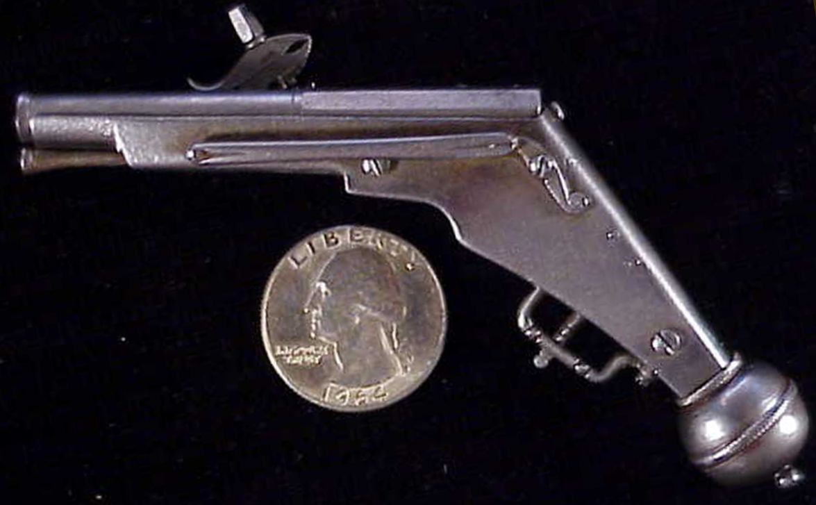 Here I have fotos of the same type of wheellock miniature pistol of an US-collection and fotos of an allsteel-wheellock pistol of my collection with a Nuremberg barrel of 1596. There is the mark with crossed kees of the city of Regensburg at its lockplate. Both pistols have screws with rounded heads.