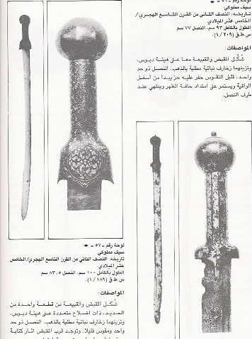 Since then several books addressing narrowly defined topics ( i.e. Yemeni Janbiyas, specifically Omani weapons, North African bladed weapons) were published and internet Fora had multiple discussions of different physical aspects of Arabian swords and daggers, their history, their typology, uncovering formerly unknown examples etc,etc . In short , we have gotten so much of new information that a new book covering the whole panoply of historical weapons of the Arab world is absolutely needed. Either Elgood might re-write his book as an expanded second edition or somebody else might assemble a group of people with good knowledge of a particular variety of ethnic weapons to be assigned well-defined chapters. I think the time is ripe for such an enterprise. |