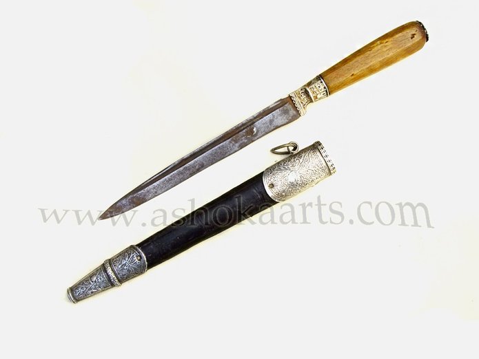 The confusion with Algerian khodmi daggers is understandable and these knives may well have a common ancestor, such as the stiletto, but the decoration, the shape of the hilt, the blades etc are all different.