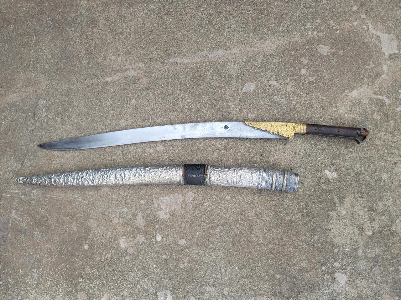 I would like to offer my Yataghan for trade for some Nice Filipino items. The blade is in great shape and the silver scabbard is amazing. The grip is on tight but is damaged. I also have a set of bichaq knives available. Send me a message if you have anything you are interested in trading.
