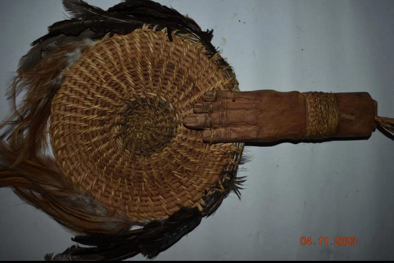 It could actually be a fan, a one for lightening a fire. When I got married traditionally at Halmahera, similar fans were presented as bridal gifts as well as tongues from decorated bamboo, which were traditionally used to fetch a glowing piece of charcoal from the neighbour.