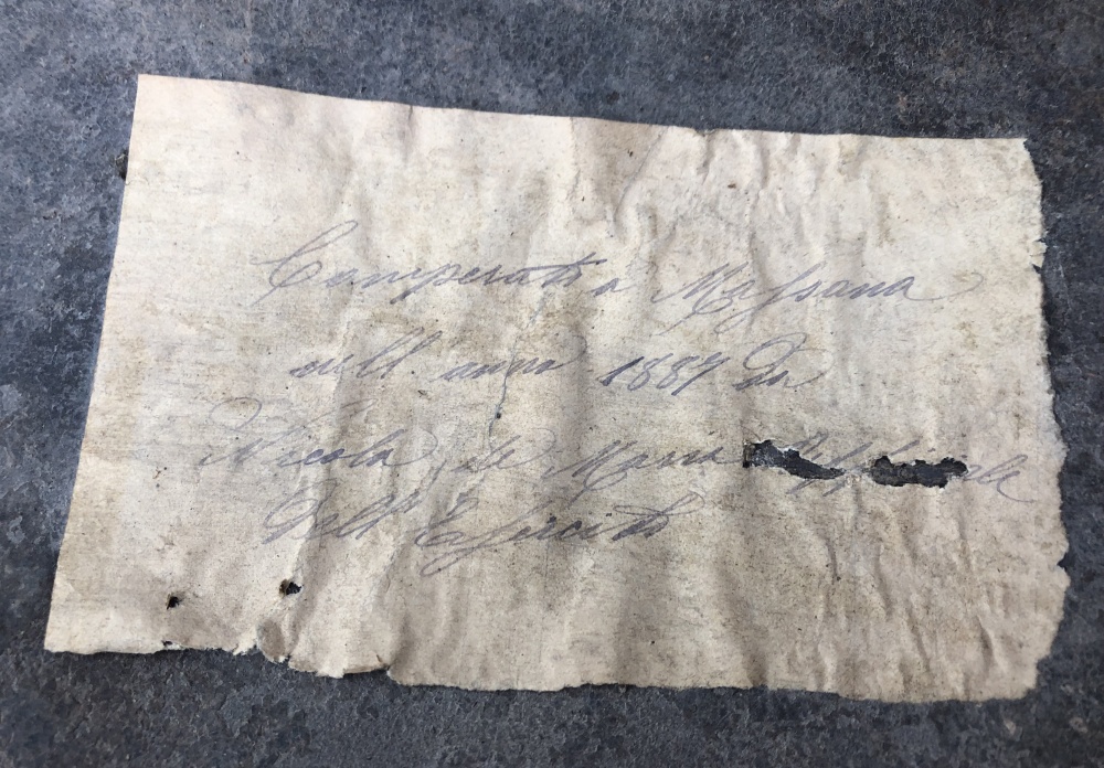 “Bought in Mafsana in the year 1887 ….” The rest is unclear.