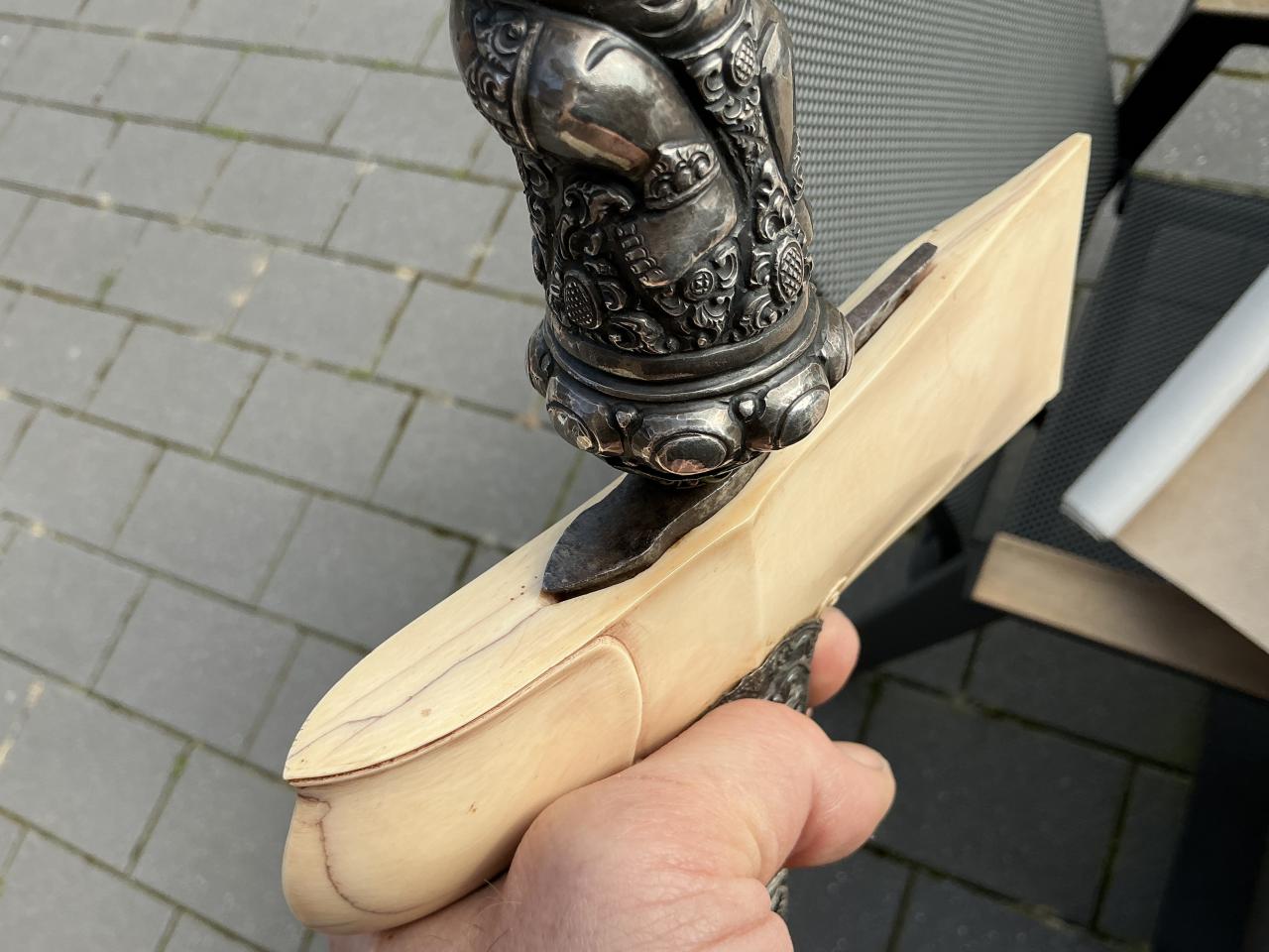 I like to share my (new to my collection) Bali Keris. I have got some informations recently. The blade seems to be older than the dress, and I was told around 18th century. The silver and ivory dress something between 1908 and the thirties. Hope you enjoy.