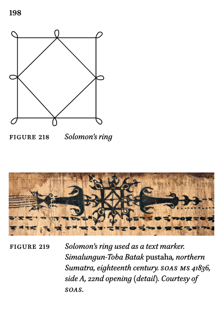 Yahya, F. (2015). Magic and Divination in Malay Illustrated Manuscripts. Brill. "This design is an ancient one- Schuster has traced its earliest appearance to an amulet from Mohenjo-Daro dating to 1,300 BC (at the latest), and it is prevalent in South and Southeast Asia and even in Europe according to Shaw (1971)." I used "Seal of Solomon" because as noted in your Wikipedia entry, the term is interchangeable with "Ring of Solomon." The image in the book is captioned as "Solomon's ring."