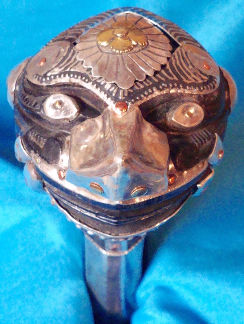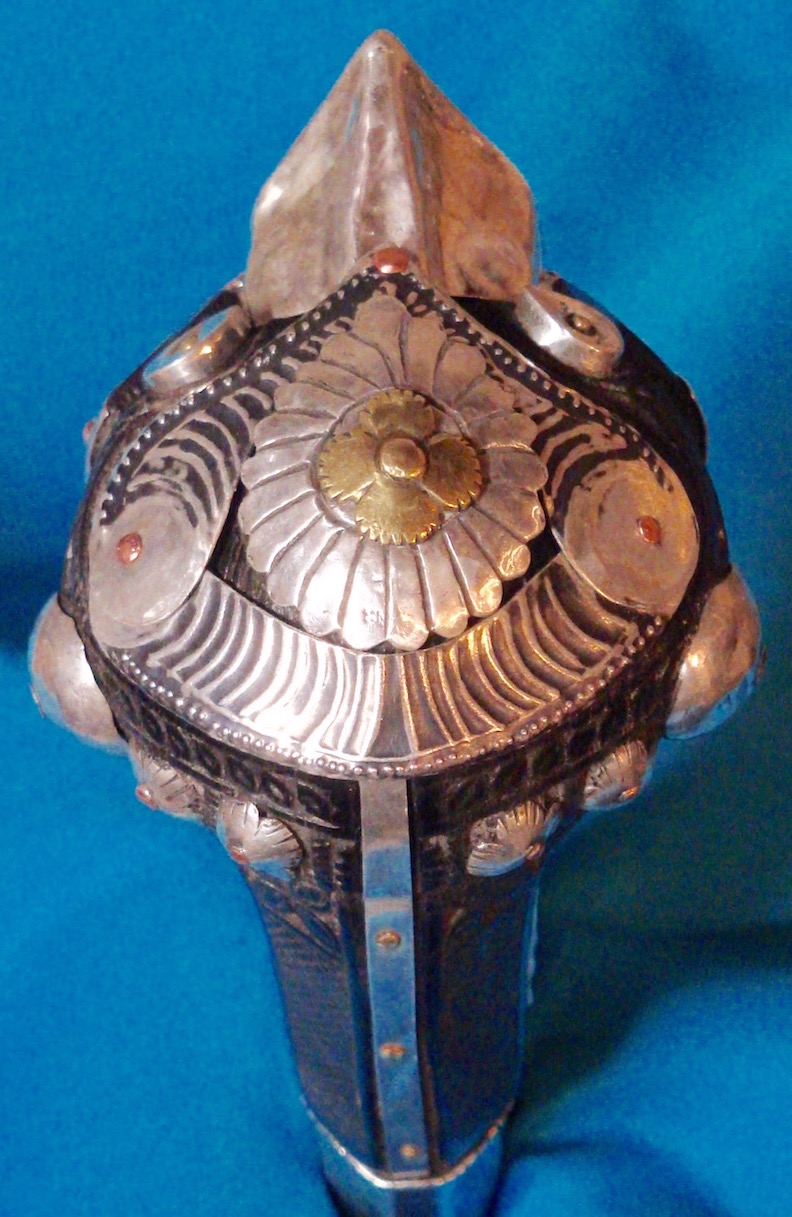 But I really don't like it when I find out I've bought a fantasy composite of old (and new) parts after the fact, or when people take apart old swords that are still largely intact in order to harvest parts. In this case I don't think I would mind knowing that either the nose or some of the silver was a replacement (but I would personally keep it as it is since I quite like it and I don't feel the missing bits detract from it). |