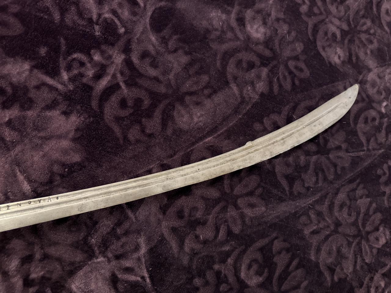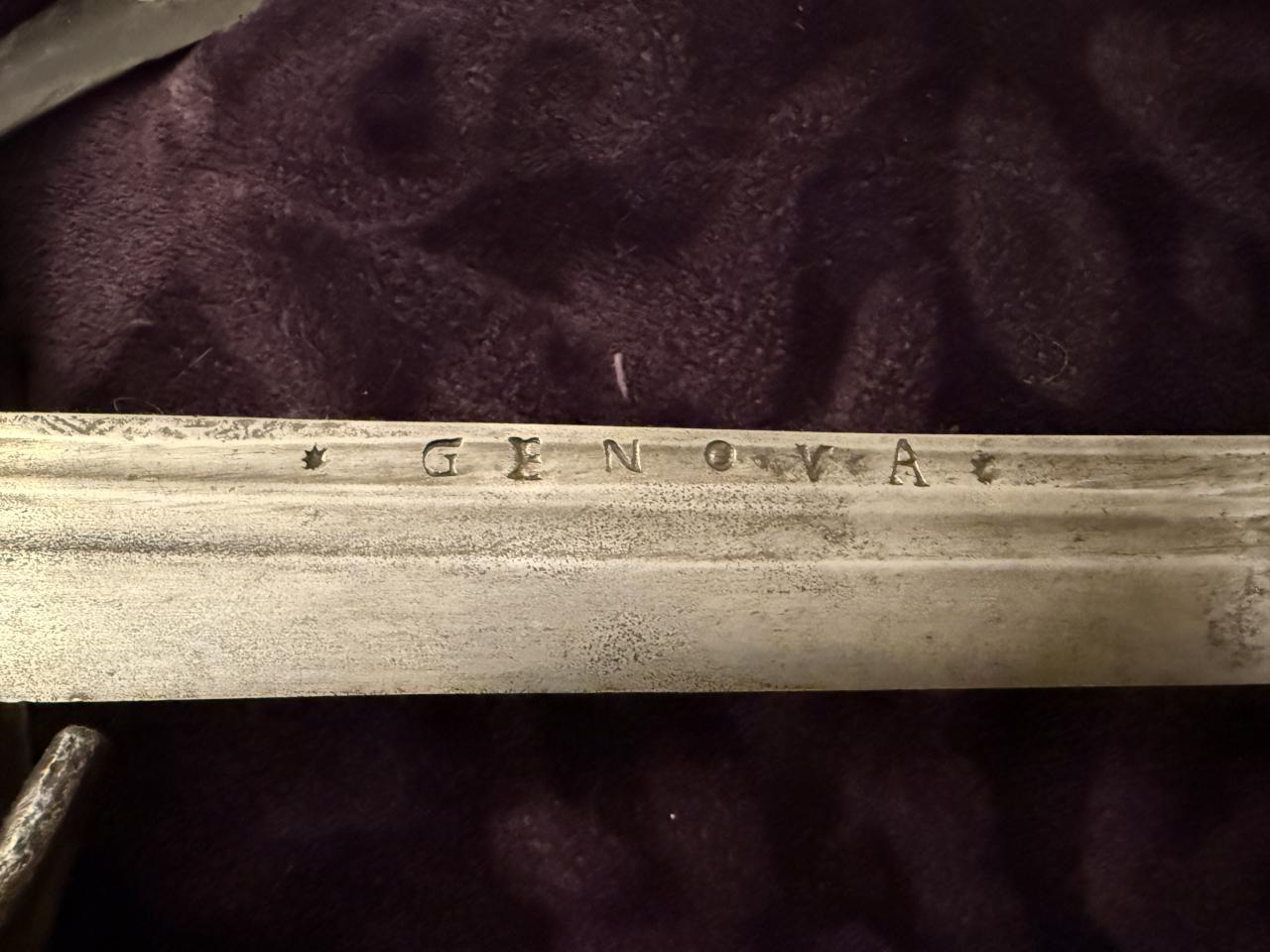 Styrian dusaage or in Croatian Tesak, second half of 16 century, with Italyan blade of high quality, one side marked Genova with stars, other side moon with two square looking dots and two stars, those kind of stars i allready encountered on Italyan blades from 16 century.