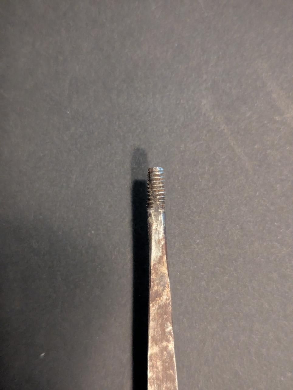 Of course like I mentioned earlier, the acorn pommel was threaded. A gentle tug and the blade came out of the hilt quite easily. A bit of steel wool and oil on the tang if only to clean some rust and there is a hallmark on both sides as well. Right now all I can offer are the photos with no substantive evidence. It appears in my eyes very similar in weighting and feel-in-hand to my French superior officers sabres and others of the same era but I admit I have not handled many Spanish or Mexican swords. Hopefully this will provide more information. Please bear with me as my replies need approval before posting and I have a few posts worth of photos to upload, sorry! |