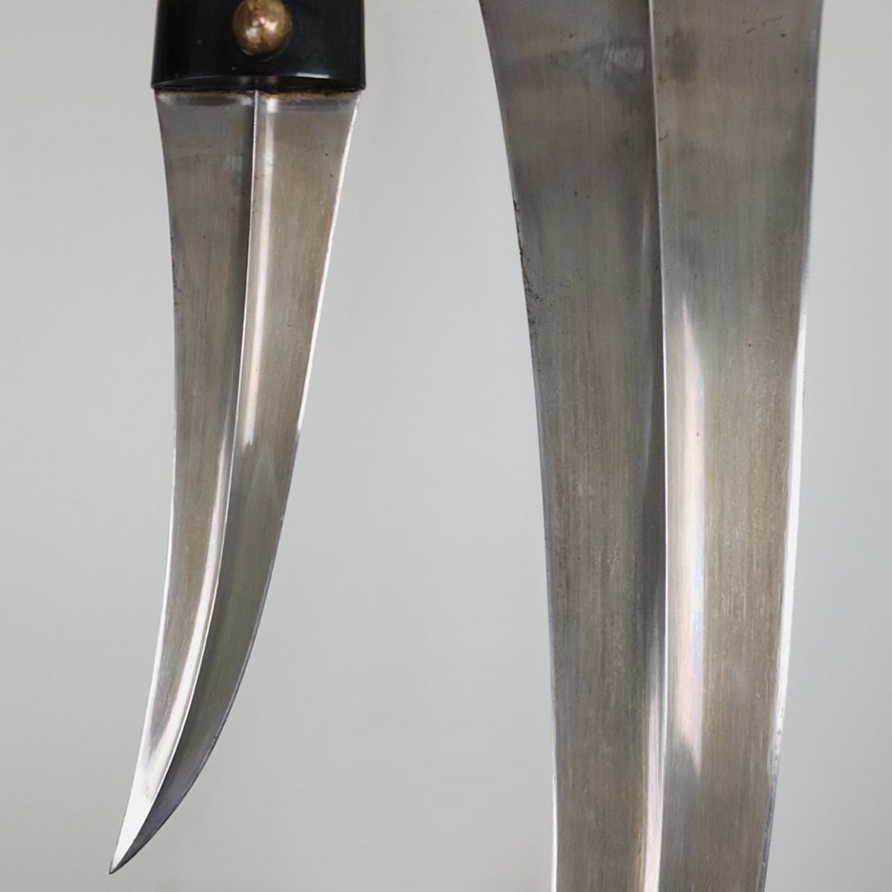 I began filtering through some doubles that are in the collection and releasing a few as I see fit to make room for some new items. I am offering here a very well-made Kurdish Khanjar with a water patterned blade from the area of Kurdistan or Northern Iraq. Complete with a nicely embossed sheath. Asking $300 + shipping. If interested or any questions, feel free to reach out at themansfieldcollection@gmail.com. Worldwide shipping is available.