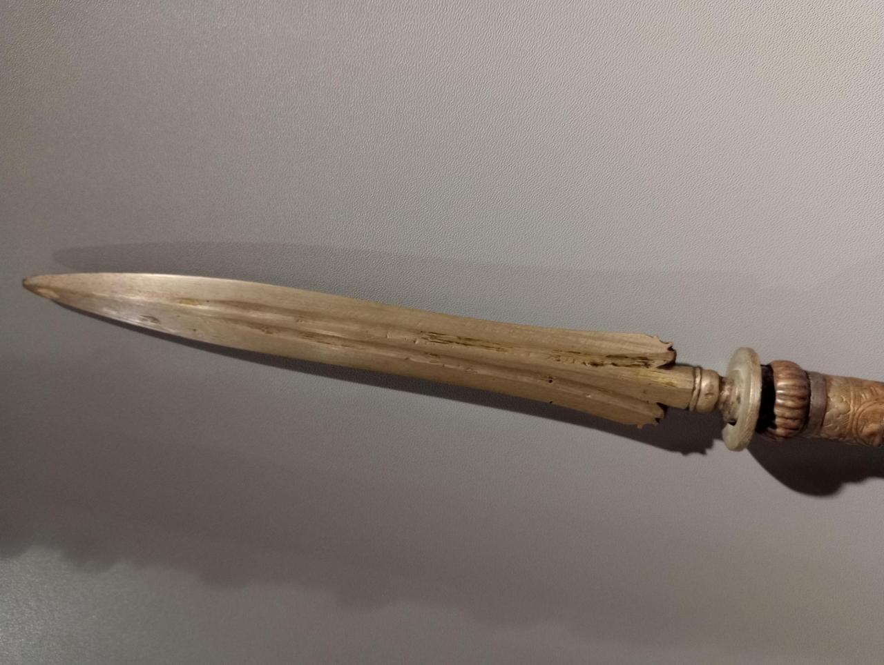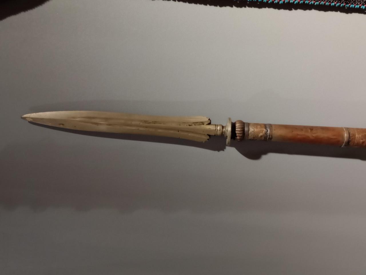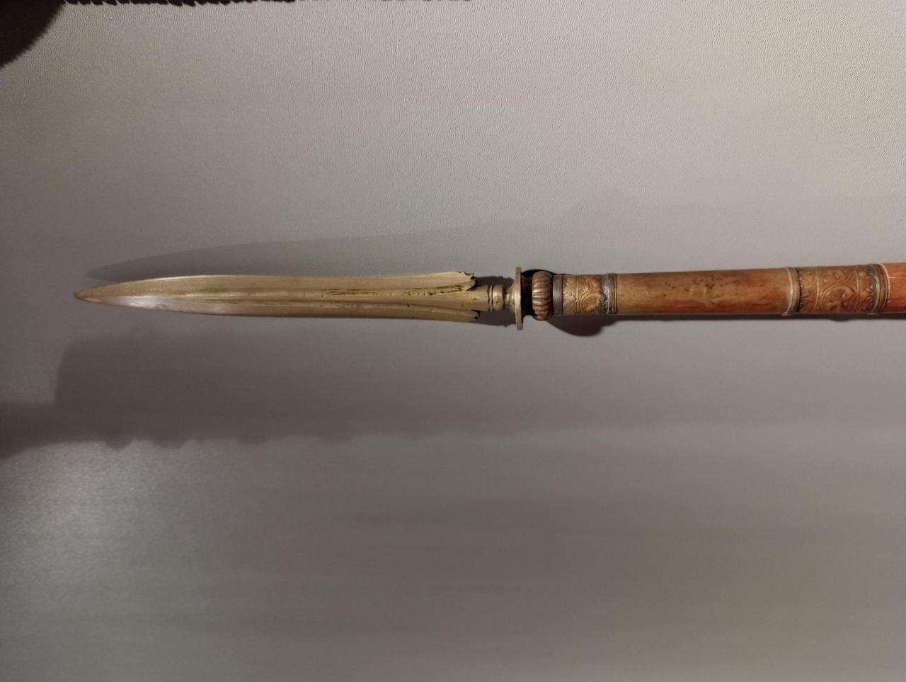 today I saw another spear with a brass spearhead. the shaft this time in lighter shade of wood. but otherwise the same shape and size.
