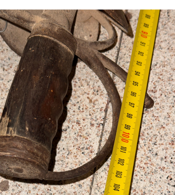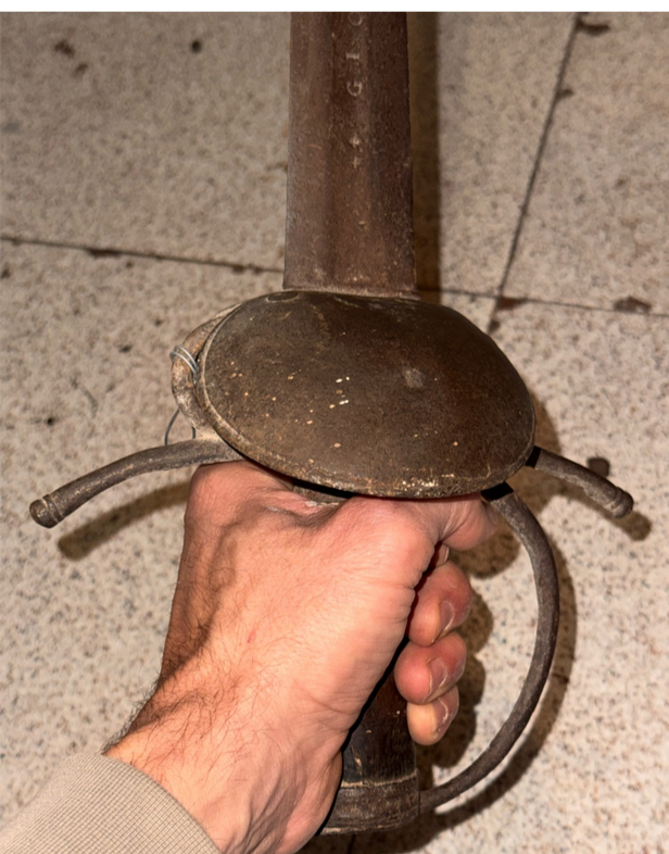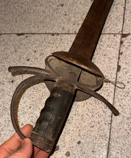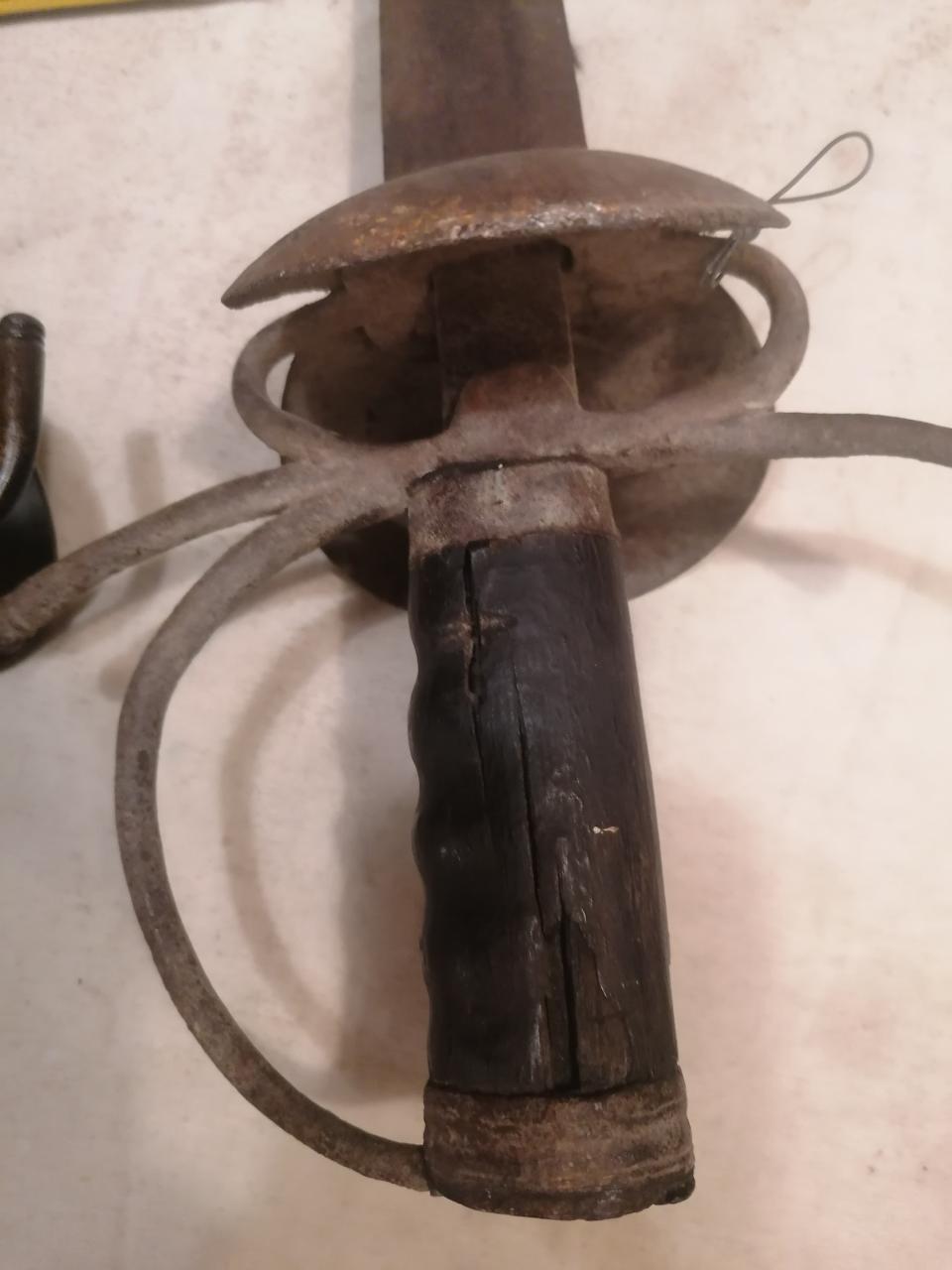 Somebody threw away original grip and pommel and replaced them with a new mahogany broader grip and wasters. All well done and purposeful. He also moved the quillions and reduced the ricasso length.