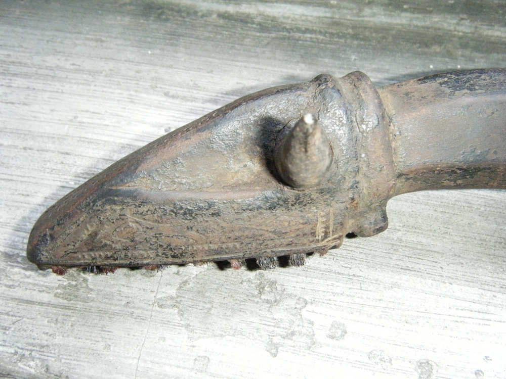 The auction pictures are all I have at present, and they were not of good quality. I managed to extract some better images from the online pictures using Photoshop. Both swords are black. Old oxidation accounts for the blackening of the blades, but the hilt and scabbards were likely exposed to a smoky environment dating back many decades. I can't tell if the swords are consistent with a 1700 date from the online pictures, and there are some obvious condition issues with both of them. However, they were a relatively inexpensive purchase so I decided to take a chance on them.