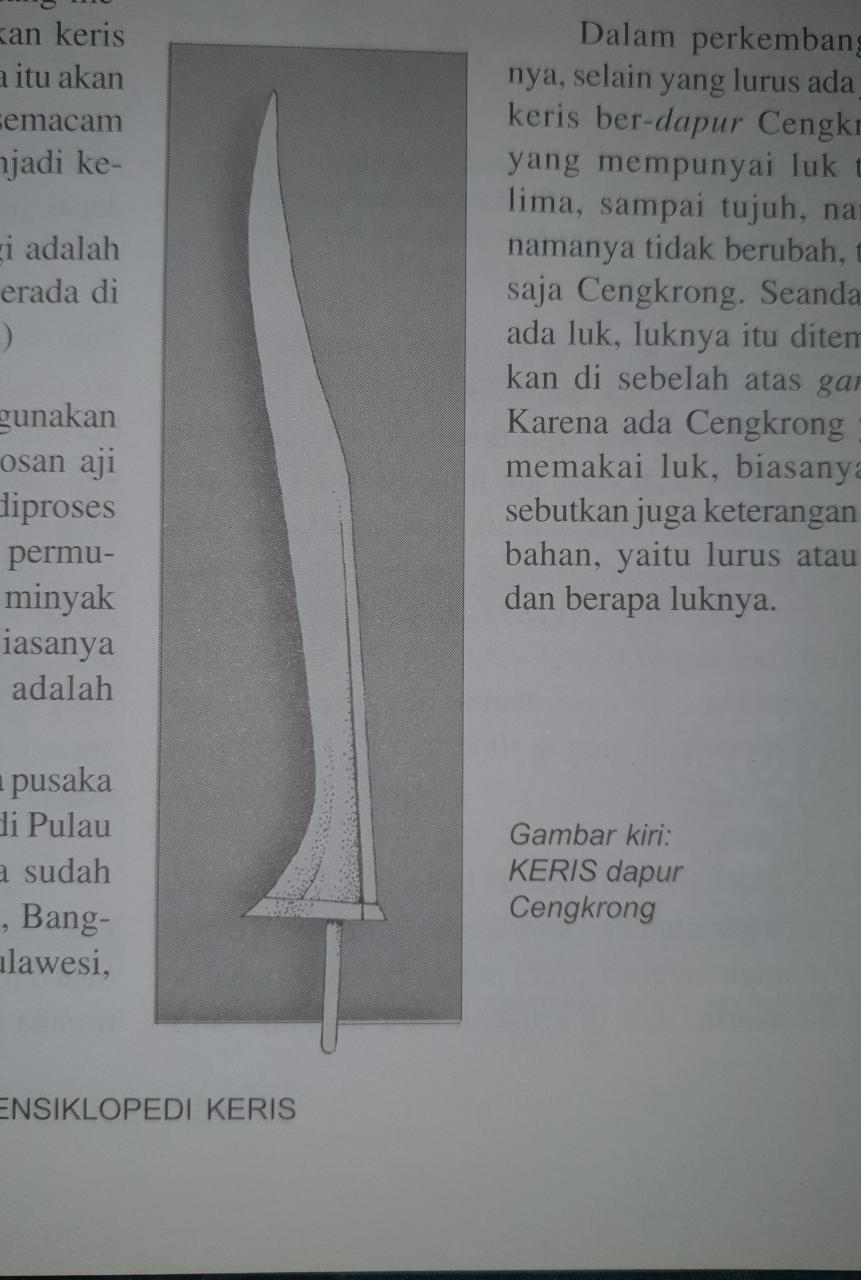 On pg 127 of Ensiklopedi Keris, Harsrinuksmo shows a drawing of a very similar looking blade and lists it as "KERIS dapur Cengkrong. The illustration appears to show a ganja.