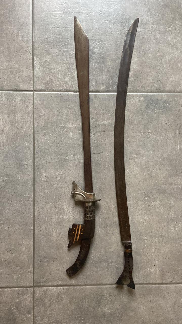 Not my area but I think the one with the fancy handle might be a bit more of interest, such a shame they have no scabbard.