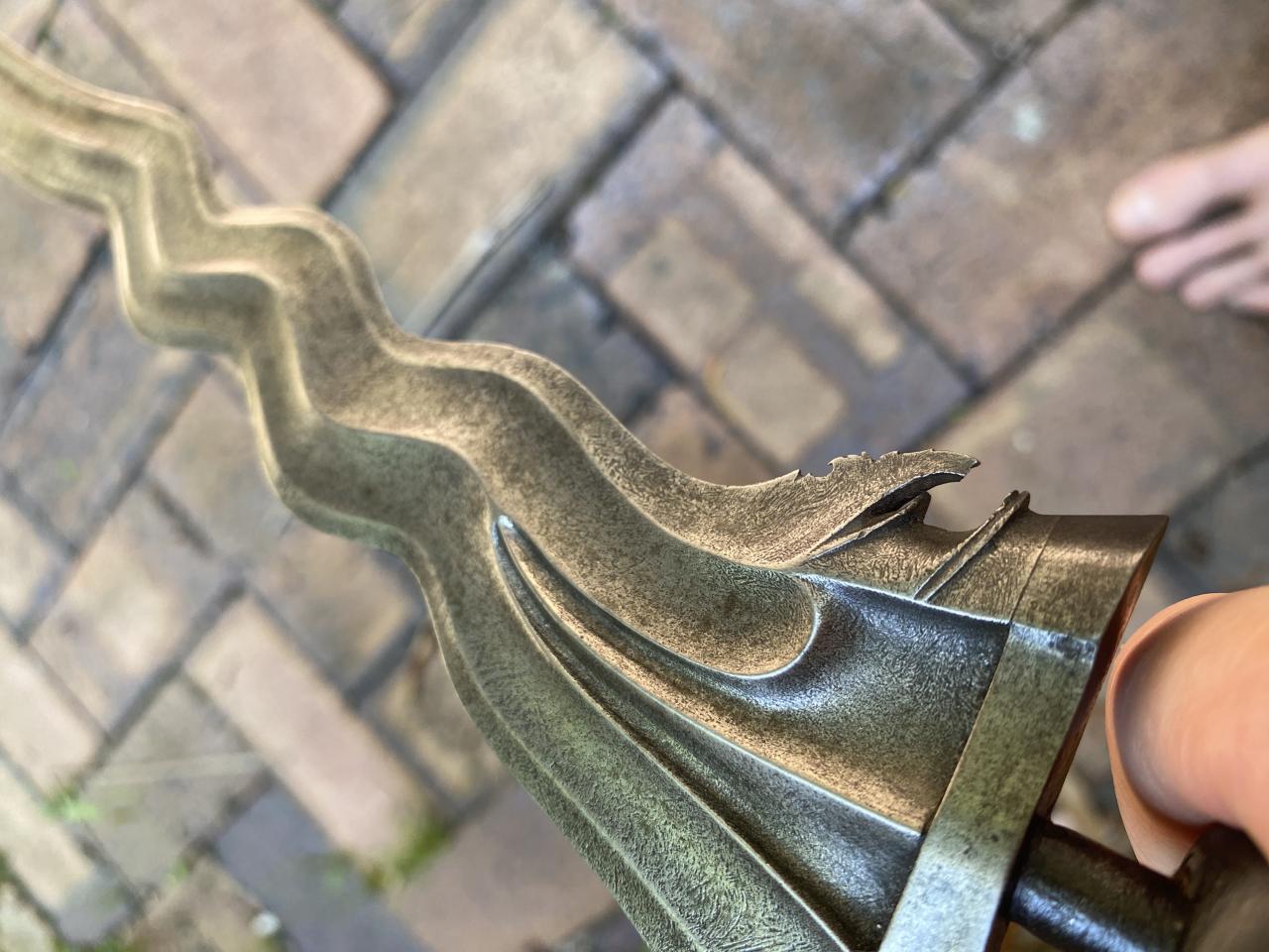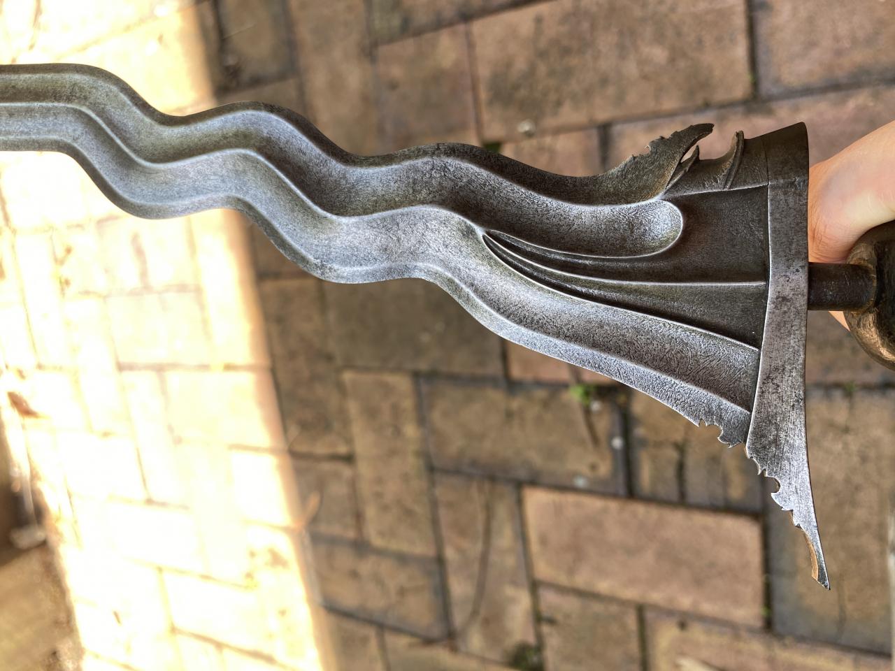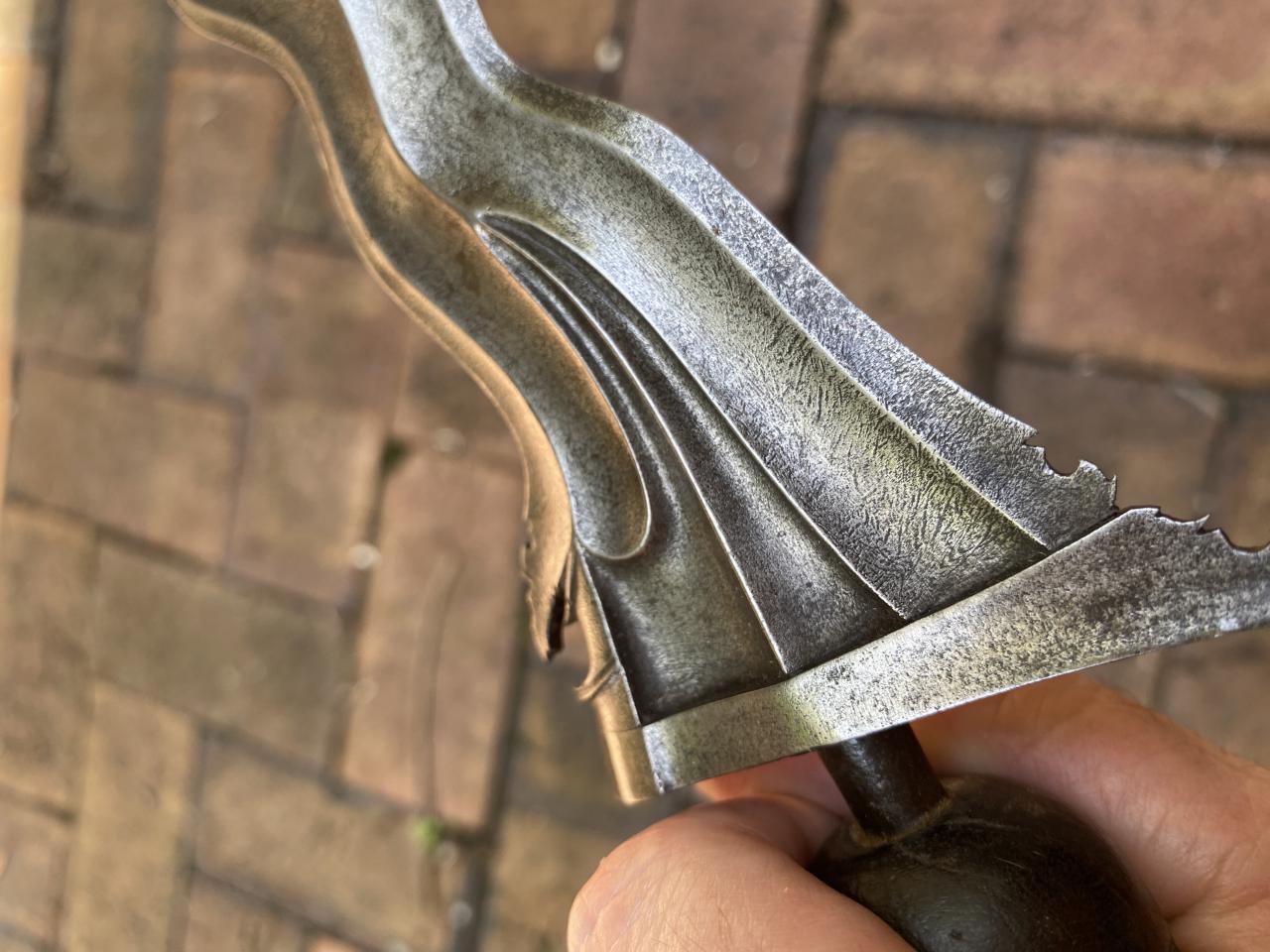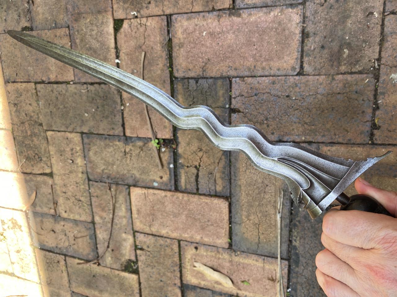 Is anyone willing to venture an opinion on the swirly pattern evident in this Malela keris? Is this crucible steel, unlikely as the prospect of a wootz keris blade might seem?