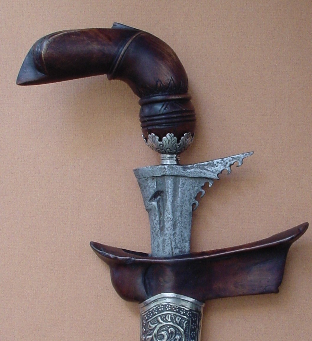 It's width is much thinner and it seems to have a form that puts me in mind of Minangkabau keris. Likewise the hiltcup. See the example below.