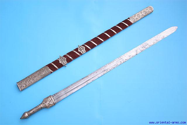 The silver work is spread about broadly; the hilt design is unique in my experience.