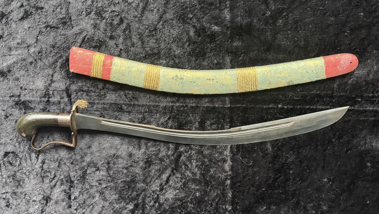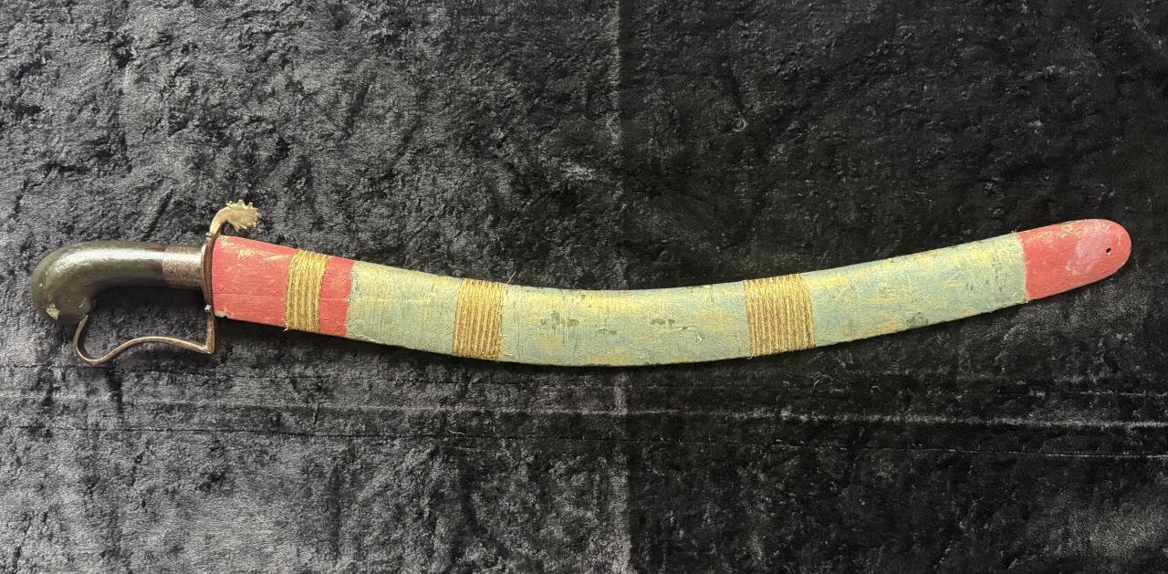 thank you for your reply, i think the scabbard is original, as i have seen some with a painted sheath in red paint in the same manner at WereldMuseum. Some of them have brass rings arround it, and others cane. But the quality of the blade is really beautiful. |