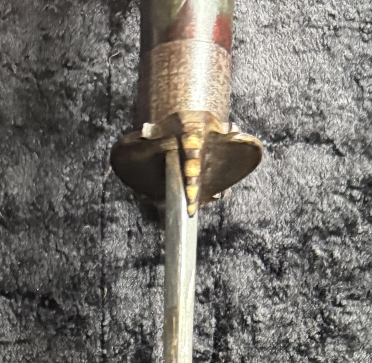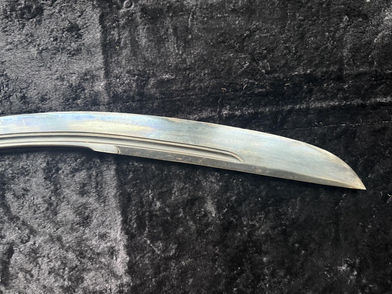 Like said before, the blade is beautiful. While I've seen red painted scabbards I never have seen them in blue. And I am nearly sure, that the hilt (I think it's wood) is coated by something, could be what some people would call patina, old dirt or a coating of something. I think that the painting of the scabbard isn't original, just my humble opinion. It's a very nice BB and I would be happy to have it in my own collection. Regards, Detlef |