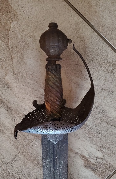My example also has ANDREA FERARA blade with central fullers, when it was published in 'Bezdek' it was shown dating c.1642 by the author. It is decidedly rough, and the guard has separated from the pommel, but it is good for my 'historically' purposes.