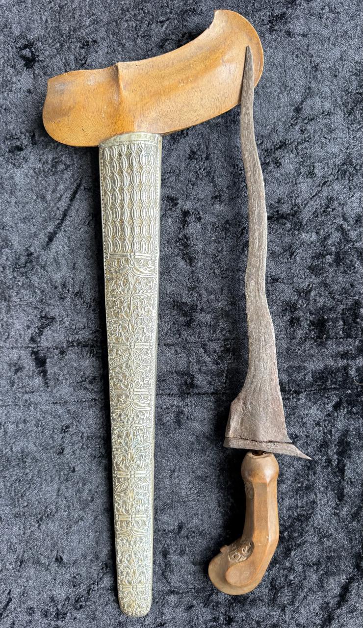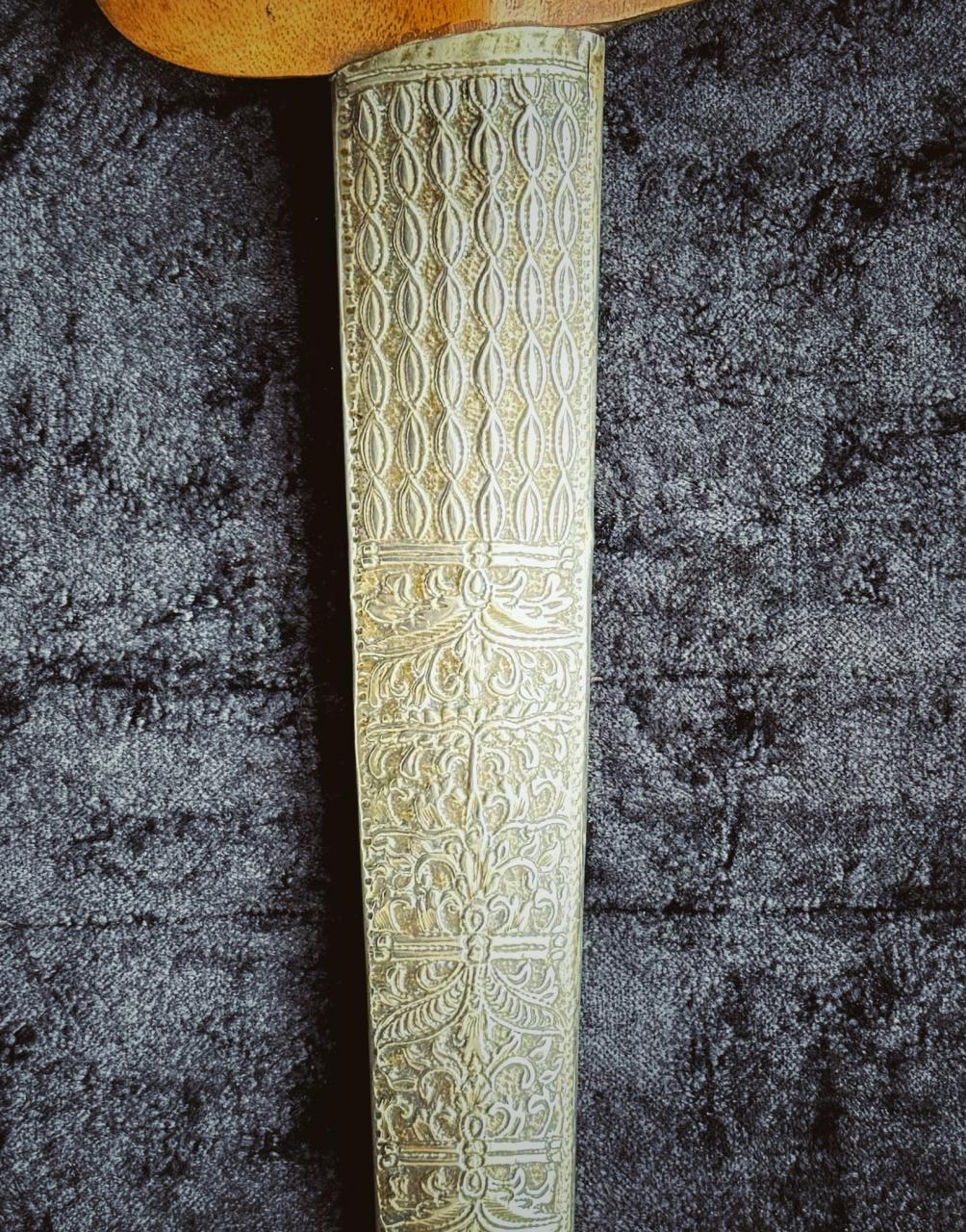 I recently acquired this Keris with silver pendok. I think it's a Keris Gayaman Surakarta, it's missing a mendak and could use some TLC. I would like to know what this type of pendok is called as I could not find much info about it's decoration. The wilah is not that tall and 5 Luk. So hope to gain some more info about this Keris. Thnx for now and regards, Martin |