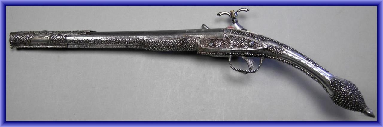 Silver "shells" are cast in mould, and put together two halfs of them, 99% of pieces i encountered are made this way. Beneath them is wooden stock. There is allso gold plated version with mercury technique of gold plating caled Zlatka or Goldie. They were only made in Boka kotorska, some authors place them in Greece and Albania but that is not thrue, greek silver pistols are very much diferent, and they never had this style of raised silverwork, let alone albanian ones. And about Đurđica Petrović book i would skip that, it is full of nonsense and serbian propaganda (for example she proclaims sword schiavonesca which is venetian and there is hungarian version, she proclaimed it serbian sword becouse it has S shaped crossguard, and in serbia they write S in cirilic C, better to awoid book). You could ask in Kotor museum or Perast museum for more details, but i think that it is zero chance, even goldsmiths in Kotor today, they dont know, im there almost every few months it is my family hometown, that art form is forgoten long time ago. Are the pistols yours? They are very nice examples, i would say made for order of some pasha or vezir. |