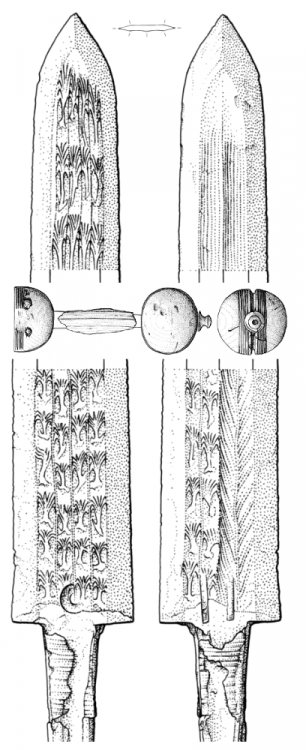 I believe the blade from #1 surely is 19th cent. and perhaps could be earlier. The Warangan finish on it is an old one, surely pre-WWII. Regarding Roman swords and pattern welding - there is a series of books dedicated to Illerup Adal finds. Illerup Adal is a bog in Danemark with spectacular deposit of offerings, and one of the most important sources for well preserved elite Roman spatha. The spatha from the site can be dated around 200 AD, along with 90% of weapon finds. Pattern welding with twisted rods, often more than two, is among the less complex patterns found there. Others include welding of separate, pre-forged parts, similar to Pamor Poleng, or using braiding. Work of such complexity did appear again only since the second half of 19th cent., true for many things Roman. Pattern welding with twisted rods did appear even on foot soldiers Gladius and Pugio. The problem is the possibility to recognize the pattern. Illerup Adal is an unique situation, mostly blade surface of Roman, not to speak about earlier swords, doesn't allow to see any traces of it without using X-ray. |