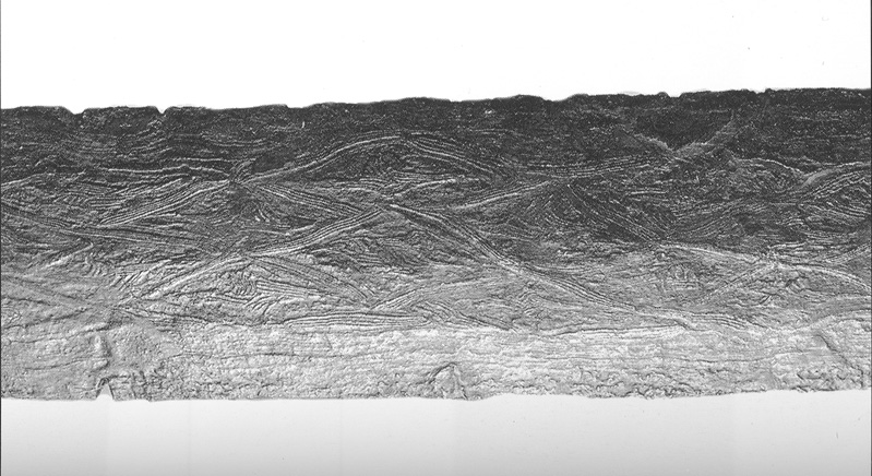 I have now had a chance to examine my photographs and notes of EDb16. I cannot recall that we had an argument about the way in which this pamor had been produced, but we probably did discuss it, I say this because in my notes I commented:- "The pamor in this K. is skillfully manipulated" as you have remarked, this pamor pattern was very difficult to see, it did not come through in my photographs, which were not particularly big images, I was using a Canon S95 & in raw, this produced images that were adequate for what I was doing at the time, but even with more modern (this was 2012 I think) & more sophisticated equipment, I doubt that the pamor could have been captured. In fact, that pamor was so difficult to see that I sketched the motif, & here below is that sketch. I've forgotten what my impressions were at the time, but looking at the sketch, my impression now is that if a bar was used to produce this pamor, that bar was probably tightly twisted & then bent into a series of "S" bends, something similar a lawe setukal pamor, but in different orientation. This was a large, strongly made keris, ample evidence that by the 17th century smiths in Jawa did have more than adequate skills to produce very refined blades. After that visit to the museum's stored collections I did exchange some correspondence with the curator there, & in that correspondence I was advised that this keris was in the collection from at least 1674, possibly earlier. |