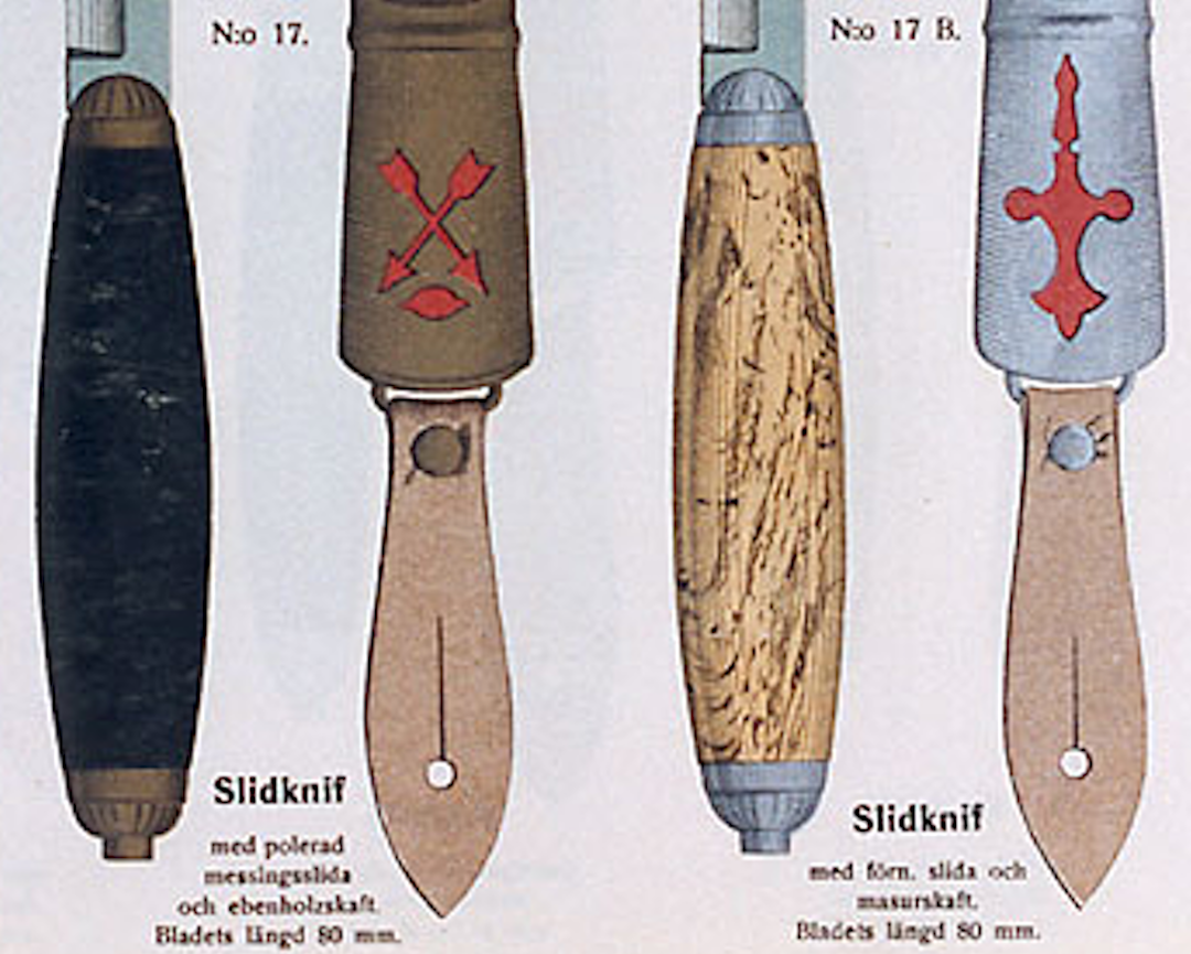 It is hard to read the descriptions of the knives in the catalog. I just spent an hour or two playing with Photoshop to try to read the small type. Best I can make out is that slid refers to the "slide" or sheath and skaft refers to the "shaft" or hilt. A slidknif would roughly translate to an English sheath knife.