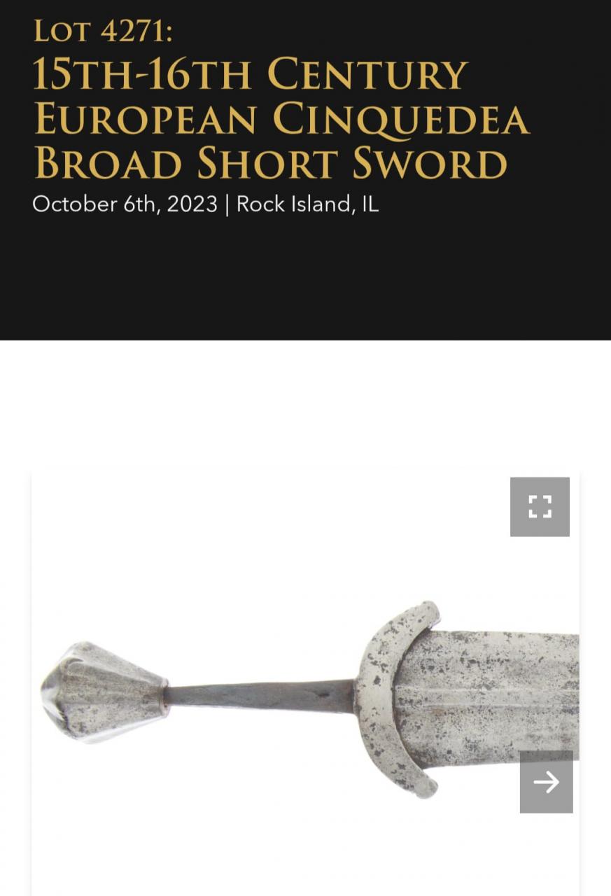 It was very rusty and I cleaned it with a lot of baking soda. I wanted it shiny but maybe it is too much and help to make it seems too "clean'/fake I found , thank you , this 16th large cinquedea sword who don't looks older, guard is +/- look like The pommel is as unusual as my wheel medieval pommel. Maybe this one is recent too ? I wonder if there are old steel leaf blades for comparison , The ones I found were all bronze made, Sure iron/ steel avoid humidity and turn to rust then dust but it is srange that since antiquity,, laTène period. no celtics or just leaf blades steel models have been kept with care. |