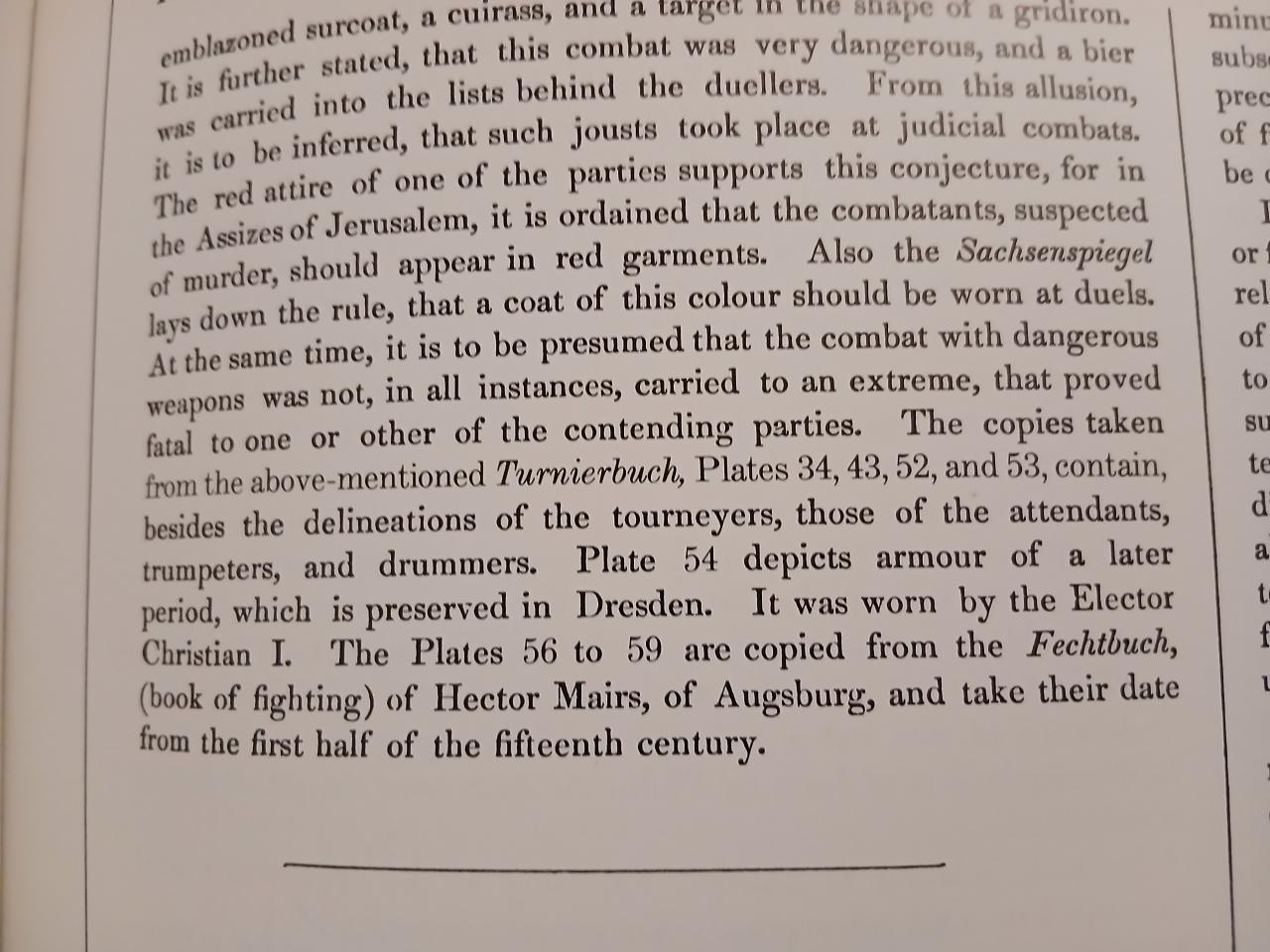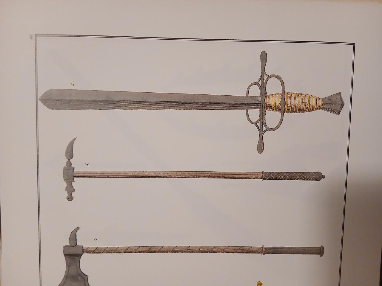 for comparison and just for pleasure to see it, Usually , 19th reproductions would look lîke original old models, for make money or for revival this one is really different and as Tim Simmons mentioned, the did a really good job just for a fantasy deco sword. In the book "the history of chivalry and armor", I found some interesting different types of medieval sword away from usual models ( like falchions...) , blades, are not so far away. The sword was from John George I, Elector of Saxony + norman warriors drawings who match for hilt and pommel of the sword. I think it was the principal influence for the bladesmith/ the owner- buyer 19th century or earlier ... Almonzo, The best thing is to show it in an history museum to an expert or curator ( ++ sure if they have medieval pieces and weapons ) In wich country do you live ? |