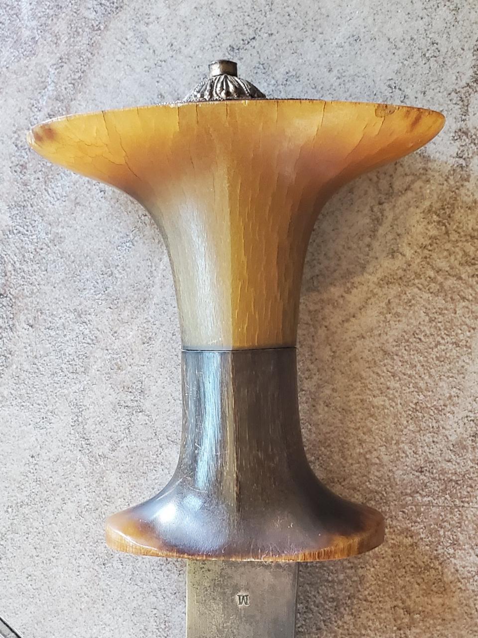 What I was asking is about the blade, the M initial and the Lion of Judah which seems etched. The hilt seems of horn and giraffe. |