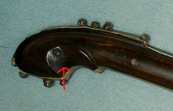 the round top of the hilt / grip and not "fancied up" with metallic support or decoration.