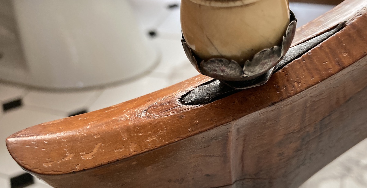 Yes, that's a job which can be done much better, just want to show how such a gap is filled up by some locals. ![]() I have had a repair done by a professional restorer here in Germany which is hardly visible, I tried to make pics of these but I need daylight for these pictures, I'll take them tomorrow and post them here. I wouldn't use such contrasting materials for such a repair/restoration, I personally would look for wood with a similar colour. Regards, Detlef |
