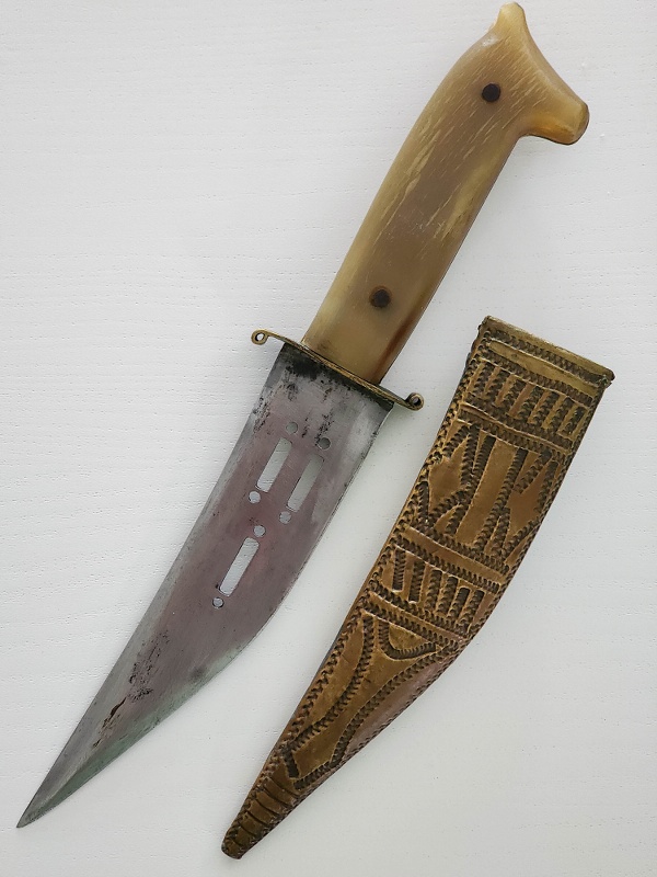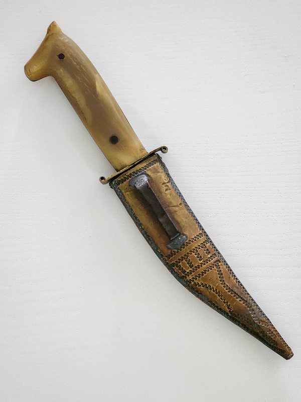 Just bought another one, thank to help from Sajen who put me in contac with the seller. This appears to be a camel head (??). The reason I show it is that it has a cross on the blade, showing that it was probably owned a Christian. Not surprising since Christian Arabs live on both sides of the Israel/Lebanon border, often in mixed villages of Cristian, Muslems and Druze sharing the same language and material culture. So this does not necessarily mean that these are Christian dagges. Still, it is always nice to have any identifying marks on a piece.