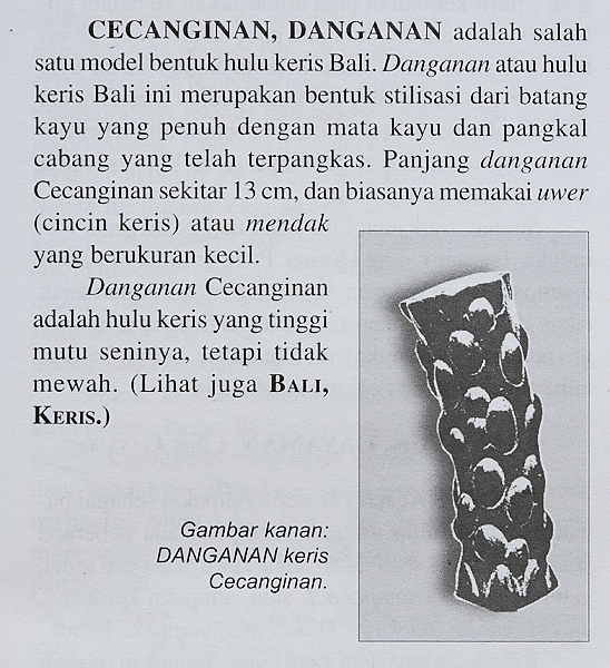 However, I would be interested to learn where you sourced the name "cenegan" & where you heard that "sampiran" means boat, & that it is the Balinese term for a warangka/ wrangka/ wrongko.