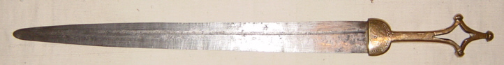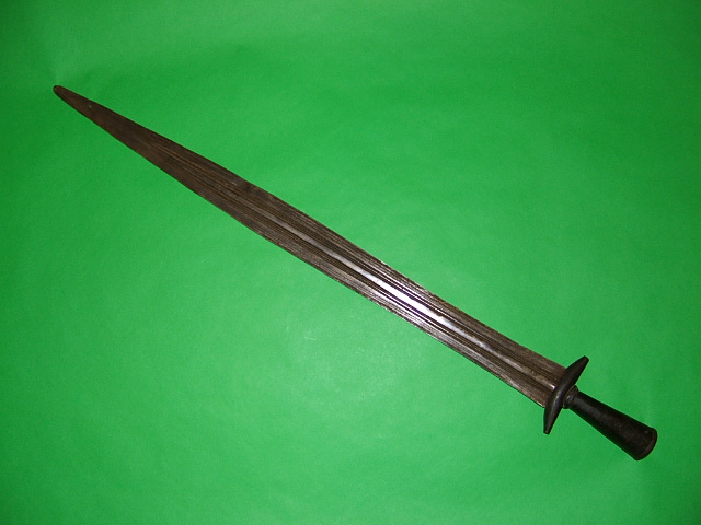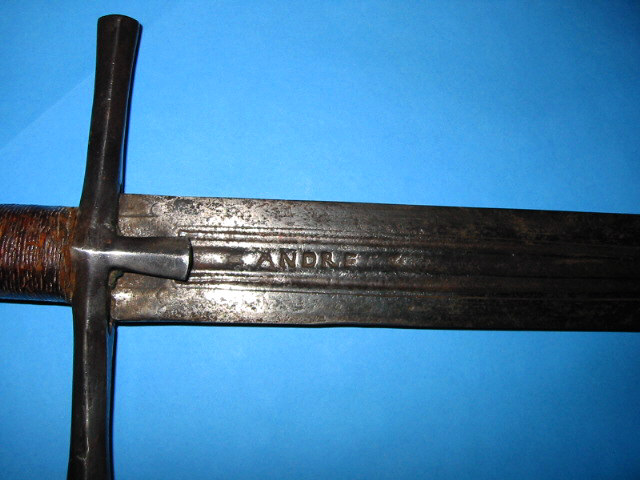Can they tell me which part of the Africa was ever capable to produce a thick blade with 2 real fullers, maybe the Tuareg blacksmiths . Has anybody seen a Tuareg sword with European blade that had the maker mark still on it? I have not seen on any of the 30-40 swords that passed my hand such blade or in any book. The Tuareg made blades are flat and very elastic usually with 3 scratched decorative fullers in the way Kaskara blades are but much lighter or with no fuller at all, the ones made in Northern Nigeria in the 20th century. This blade is 1/8 inches thick and very heavy. Gentlemen please open your books and let me know, not only what you feel it might be but what you KNOW it is .artotec |